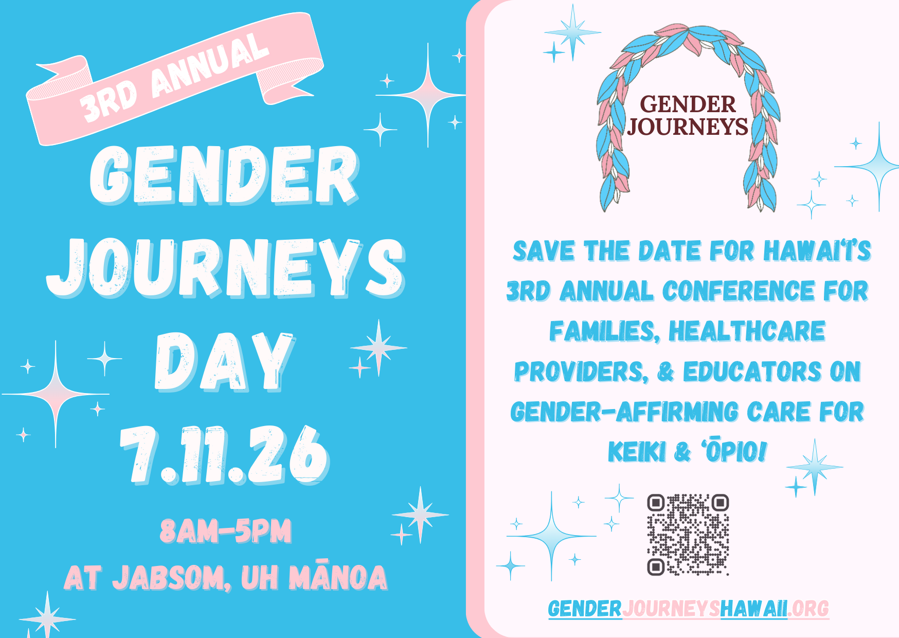 Save the date for the third annual Gender Journeys Day on July 11th, 2026, 8am-5pm, at JABSOM, UH Mānoa!